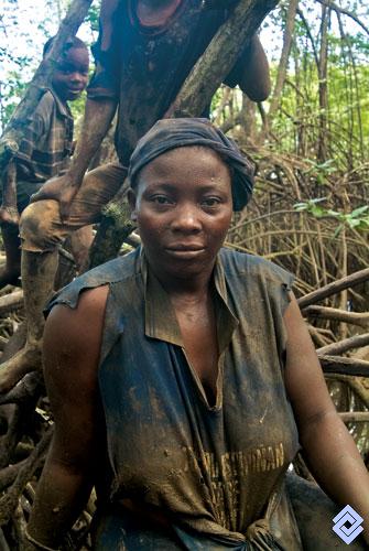 En los manglares del Pac?fico colombiano, la recolecci?n de mariscos es una actividad tradicionalmente practicada por las mujeres y los ni?os.