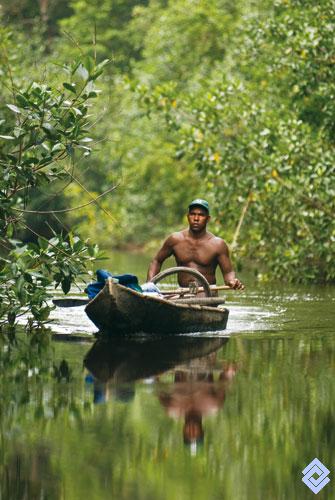 Los ca?os que atraviesan los manglares de Cispat? son una importante v?a de comunicaci?n para la poblaci?n local.