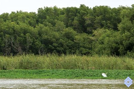 La vegetaci?n flotante, los juncales y los manglares forman una cortina verde a lo largo de los distributarios del Atrato.