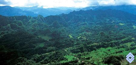 La profunda disección del sustrato creó formas de relieve rodeadas por la exuberante vegetación de la selva del piedemonte.