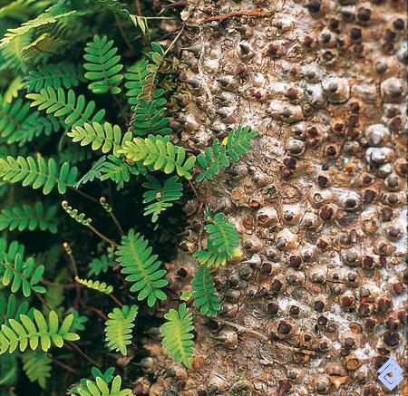 Los helechos trapadores se asocian con árboles para alcanzar mejores condiciones de luminosidad.