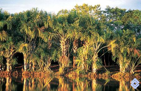 Morichal rodeando una laguna.