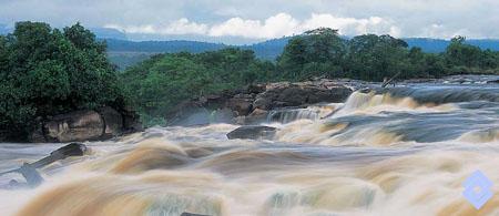 Los turbulentos raudales del Orinoco constituyen un obstáculo para los navegantes y forman una barrera natural para la distribución de algunas especies de fauna acuática.
