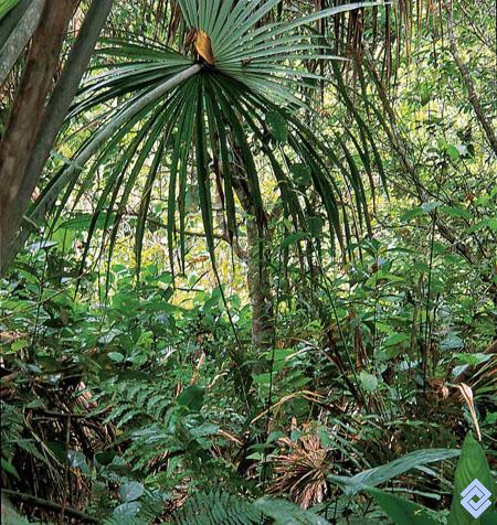 El bosque de galería, con palma de moriche, presenta un estrato herbáceo denso con abundantes platanillos.