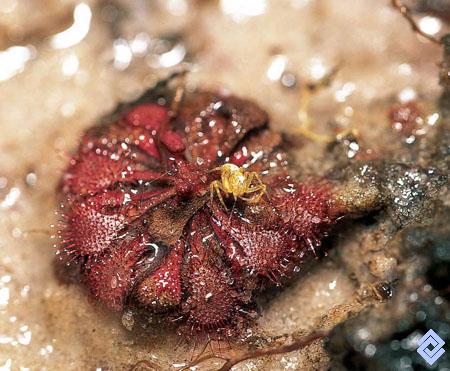 En los suelos arenosos y pobres en nutrientes, las plantas carnívoras del género Drosera toman los nutrientes de los insectos que atrapan en sus tentáculos pegajosos.