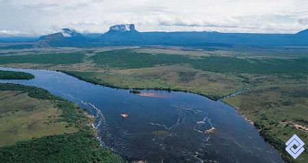Río Carrao, sobre la planicie del macizo Guayanés, rodeado de bosques y sabanas.