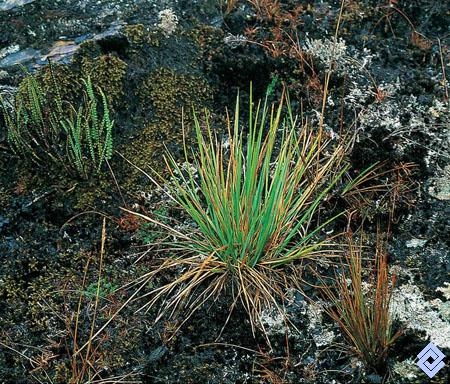 A pesar de las condiciones ambientales extremas de la alta monta?a de superpáramo, se desarrolló una gran diversidad de plantas. (Gramíneas)
