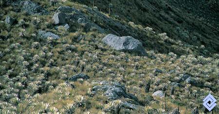 Pajonal frailejonal característico del páramo con Calamagrostis effusa y Espeletia grandiflora.
