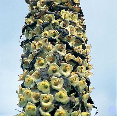 Una de las rosetas gigantes del páramo es el cardón, Puya goudotiana, cuyo racimo de flores constituye un recurso muy valioso para los colibríes.