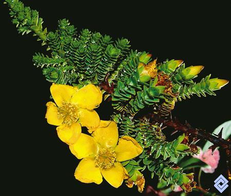 El cargarrocío, Hypericum goyanesii tiene hojas reducidas con capacidad de captar las gotas de rocío.