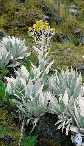 Una de las plantas colonizadoras en los arenales del superáramo, el Senecio niveoaureu, que forma pequeñas colonias de rosetas.