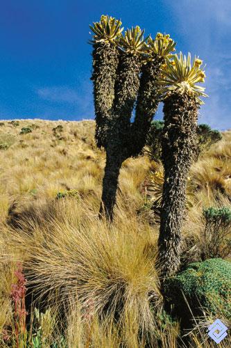 Algunas especies de frailejón guardan en su memoria biológica la capacidad de ramificarse. Espeletia hartwegiana en forma de candelabro.
