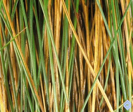Detalle de hojas aciculiformes de la paja ratona, Calamagrostis effusa, de aspecto lustroso y lámina plegada.