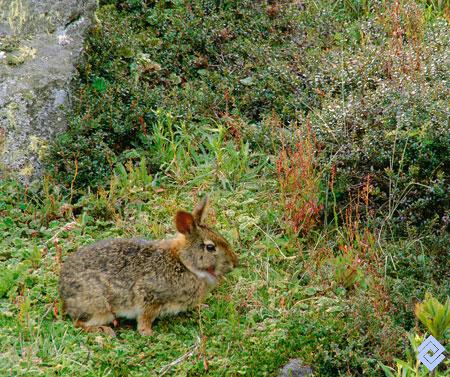 La vegetación abierta de extensos pajonales favorece las poblaciones de roedores; sin embargo la cacería y los incendios las ha reducido drásticamente, lo cual disminuye los recursos para mamíferos y aves predadoras. Conejo de páramo, Silvilagus brasiliensis.