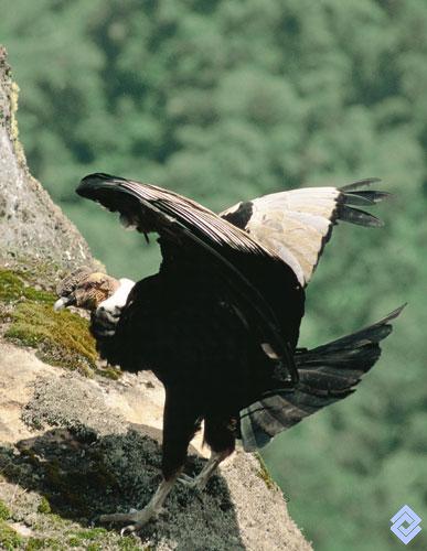 El cóndor de los Andes, Vultur gryphus, una de las mayores aves que explora grandes extensiones en las vertientes andinas, desde la alta montaña hasta los ecosistemas costeros.