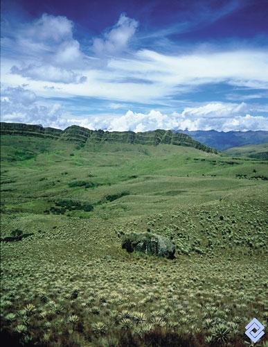 Páramo bien consolidado en la región de Sumapaz, uno de los más extensos sobre la cordillera Oriental, donde la estratificación del relieve evidencia su origen sedimentario y marino.