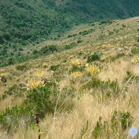 Una de las características de la franja del subpáramo es la abundancia de arbustos, dispersos o en comunidades densas, entremezclados con el pajonal y con las rosetas de frailejón.