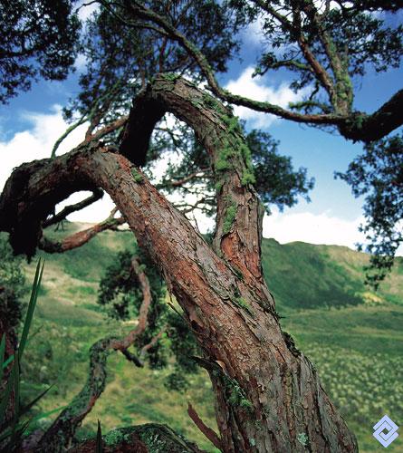En el contacto del límite superior del bosque altoandino con el páramo, los árboles adquieren formas retorcidas y achaparradas, probablemente a causa de deficiencias nutricionales del suelo o del rigor del clima, entre otros factores.