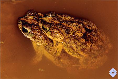 El apareamiento entre anfibios ocurre al comienzo de la temporada de lluvias, a fin de que la hembra pueda depositar sus huevos en las charcas efímeras.