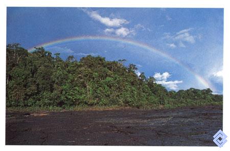 En las áreas que circundan la serranía, lavegetación está constituida por selvas higrofíticas cuyos árboles alcanzan los 40 metros.