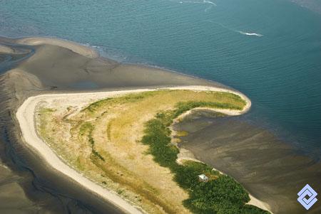 Espiga de playa de formación reciente en la desembocadura del rÃo San Juan.