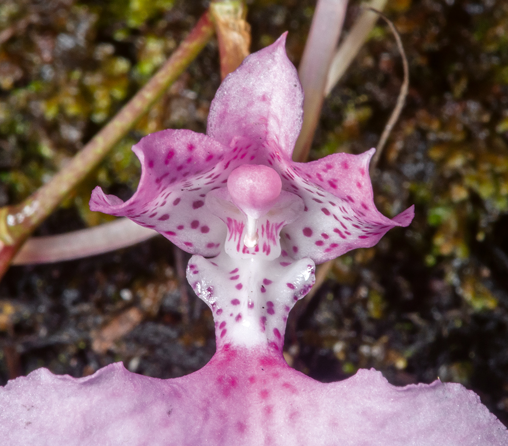 El labelo de algunas orquídeas presenta callosidades que ayudan a dirigir al polinizador hacia la columna de la flor. En la foto,  Warczewiczella amazonica.