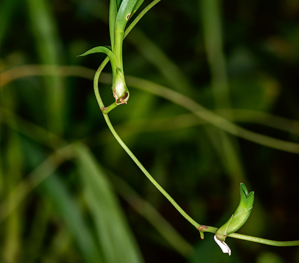 Después de su germinación, con la ayuda nutritiva de un hongo micorrícico, la semilla se hincha y da lugar a una estructura en forma de tumor llamada protocormo.