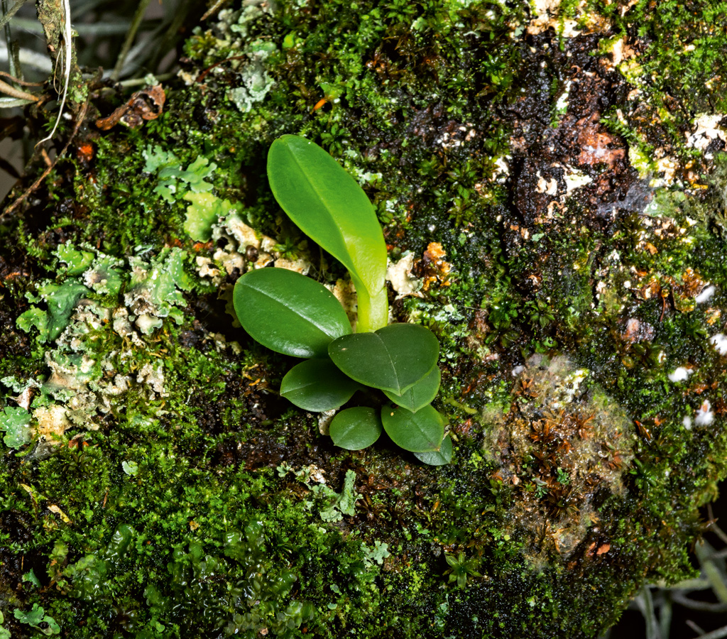 Las orquídeas epilíticas aumentan sus probabilidades de éxito cuando sus semillas se establecen en áreas donde otras plantas pioneras —como herbáceas, hepáticas, musgos o líquenes— han creado previamente un microhábitat favorable. Estas comunidades vegetales generan una fina capa de materia orgánica que retiene humedad y activa procesos biológicos esenciales sobre la roca desnuda.