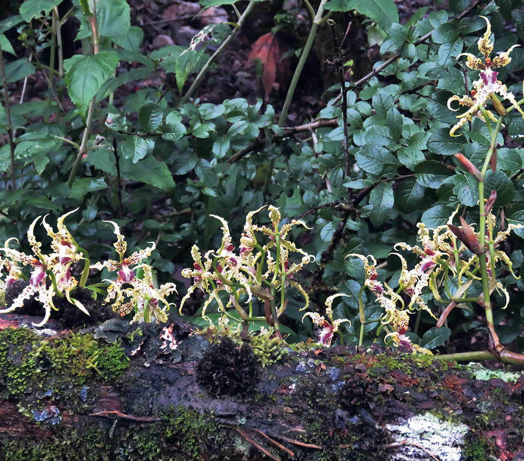 Las poblaciones de muchas especies de orquídeas que antiguamente ocupaban amplias extensiones en las laderas de las cordilleras, hoy están confinadas en remanentes pequeños de bosques. En la foto, Cyrtochilum sodiroi.