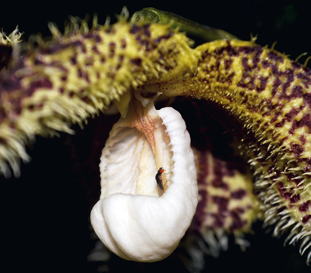 Debido a su dependencia de polinizadores, hongos micorrícicos específicos y condiciones de humedad particulares, el cambio climático puede tener consecuencias severas para muchas especies de orquídeas. En la foto, Lockhartia longifolia.
