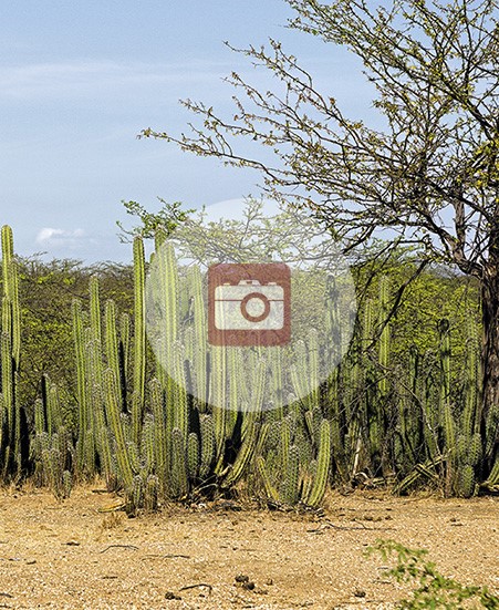 El bioma de desierto semiárido se concentra en un área de alrededor de 65.000 km², en el extremo norte de la península de La Guajira. En sus zonas menos áridas, la vegetación predominante son los cactus columnares llamados localmente cardones, Stenocereus griseus, el trupillo y las tunas, Opuntia caracassana, mientras que en terrenos exclusivamente arenosos y zonas más expuestas a los fuertes vientos desecantes, la escasa vegetación consiste en rastrojos espinosos llamados localmente carúa, Castela erecta, que crecen dispersos sobre las dunas.