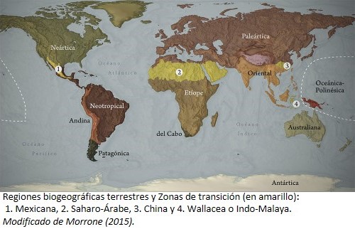 Con la expansión de las potencias europeas entre los siglos XVII y XIX, que hizo posible los viajes y las expediciones de naturalistas a muchas regiones del mundo hasta entonces inexploradas, comenzaron a hacerse evidentes las diferencias y similitudes en la composición de las biotas entre los distintos continentes. Aunque a lo largo del siglo XIX se llevaron a cabo diversos intentos a fin de poner orden a los conocimientos sobre la distribución geográfica de los seres vivos terrestres, fue el naturalista inglés Alfred R. Wallace quien en 1876 publicó el primer mapamundi que identifica las grandes regiones zoogeográficas terrestres del planeta. En líneas generales, con algunas modificaciones, la regionalización del mundo según la composición de la fauna terrestre propuesta por Wallace continúa vigente hasta nuestros días. La mayoría de los biogeógrafos actuales coincide en reconocer 11 regiones y 4 zonas de transición en los continentes y las áreas insulares del mundo. En el interior de cada región y zona de transición, es posible distinguir unidades más pequeñas según la presencia de conjuntos de especies particulares o de lugares donde habita una cantidad relevante de plantas o de animales endémicos, o que no se encuentran en ningún otro lugar.