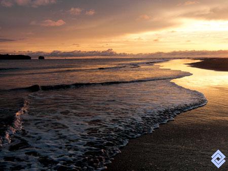 En ocasiones, el sol aparece al atardecer entre la superficie del mar y el techo de nubes que cubre la región casi permanentemente.