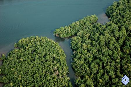 Costa baja bordeada por manglares al sur de Buenaventura.