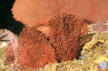Algunos de los elementos constitutivos de la cresta arrecifal son las gorgonias rojas.