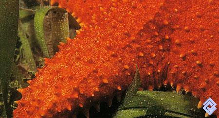 Detalle de una estrella de mar, que se encuentra generalmente en los fondos arenosos y en las praderas de thalassia. Con la ayuda de sus cinco extremidades escarba en la arena para extraer las almejas de las que se alimenta.