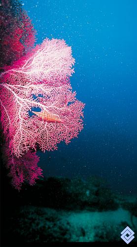 En el Pacífico existen colonias de corales que no alcanzan a conformar una estructura arrecifal. En la fotografía, un pez cirritidio de hocico largo, en una gorgonia.