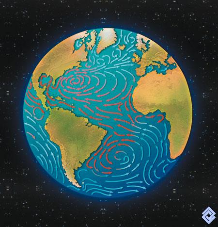 Las corrientes oceánicas son generadas por las diferencias de presión del aire, los cambios de composición del agua y la rotación de la Tierra.